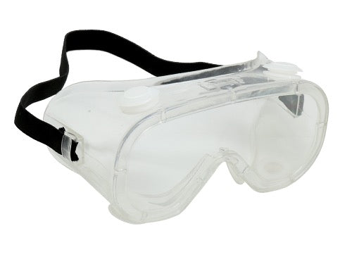 Maschera in PVC, lente in policarbonato trasparente, antigraffio, fori di areazione antiappannamento, fascia elastica regolabile. Certificazioni EN166-EN170.