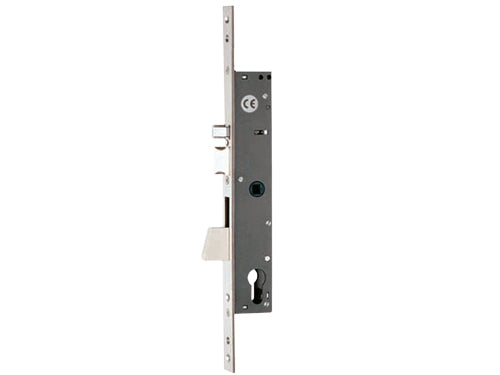 Per montati a chiusura laterale, cilindro a profilo europeo, frontale in acciaio inox 346x22x3 mm. rotante mandata 24 mm., scrocco autobloccante, richiamo scrocco con impulso eletrico, chiave o quadro maniglia 8 mm., pistone di carica separato, 2 ghiere, . Entrata 30 mm.