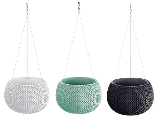 In polipropilene con gancio in metallo, vaso interno estraibile, per interno/esterno, resistente a raggi UV e gelo, finitura trama ad intreccio. Ã37xH21 cm. - Nero
