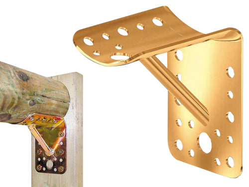 In acciaio tropicalizzato. Piastra giunzione piegata con rinforzo per legname à 80/100 mm. con piano. Dimensioni angolo 65x85 mm. - Spessore 2 mm..