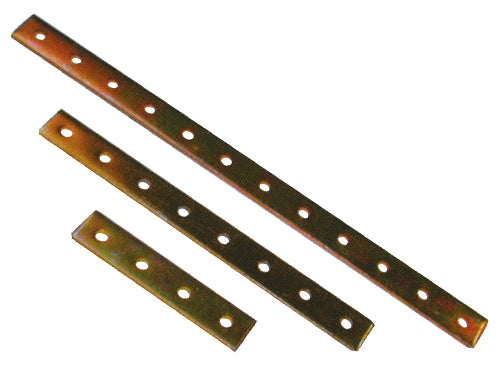 In acciaio tropicalizzato. Piastra forata di rinforzo diritta pesante. Larghezza 20 mm. - Spessore 4 mm.. Lunghezza: 200 mm.