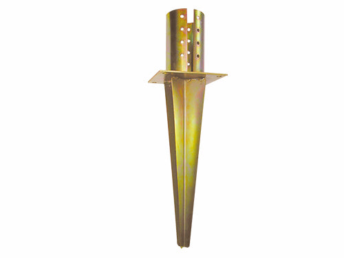 In acciaio tropicalizzato. Supporto travi tonde per ancoraggio al terreno (40 cm.). Trave Ã80 mm.