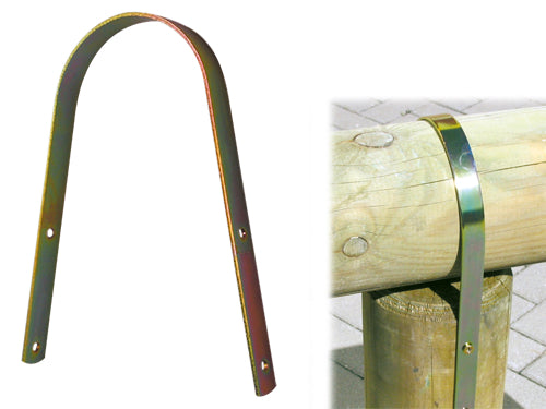 In acciaio tropicalizzato. Staffa tonda per steccatie recinzioni. Larghezza 20 mm. - spessore 3 mm.. 862-080: Ã 80 mm.