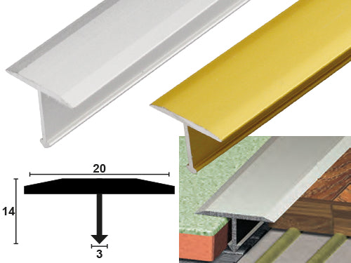 Profili a T in alluminio, finitura anodizzato satinato. Dimensioni 20xH14 mm. Lunghezza 2,70 mt.. 063G/90 - Argento