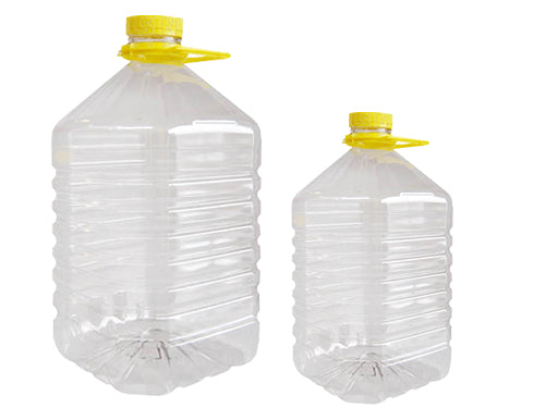 In plastica pet trasparente con tappo a vite e maniglietta per il trasporto. Indicata per il trasporto e la conservazione di liquidi alimentari. Lt. 3