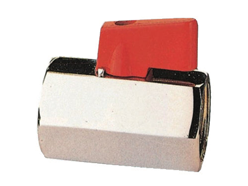 Attacco FF, passaggio totale tipo leggero - corpo valvola e sfera in ottone cromato, maniglia a leva ridotta in alluminio, tenute in teflon - misura 1/2".