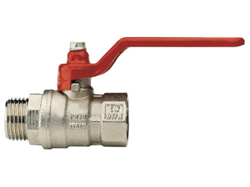 Attacco MF, passaggio totale tipo leggero, corpo valvola e sfera in ottone nichelato, maniglia a leva in acciaio, tenute in teflon . Art. 117 - Misura 1"