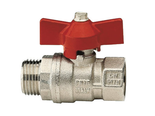 Attacco MF, passaggio normale tipo leggero, corpo valvola e sfera in ottone nichelato, maniglia a T in alluminio, tenute in teflon . Art. 119 - Misura 1"