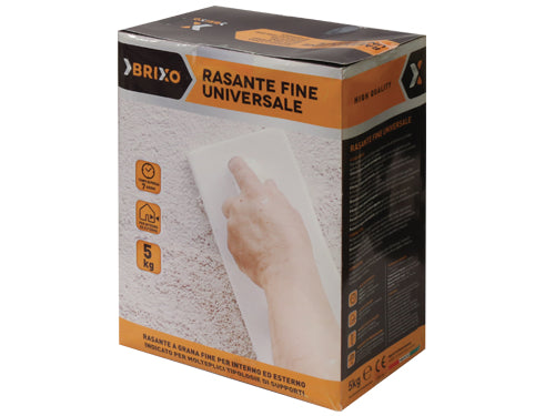 Rasante a grana fine universale per interno ed esterno indicato per molteplici tipologie di supporti: calcestruzzo o elementi prefabbricati, intonaci a base calce/cemento, rivestimenti plastici, pannelli isolanti per sistema cappotto. Colore grigio. Kg. 5