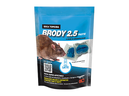 Esca rodenticida pronta all'uso, pasta fresca di colore blu in bustine monodosi a base di farine, grassi vegetali e aroma latte, molto appetibile ed estremamente efficace dopo una sola ingestione. Confezione 150 Gr. Da utilizzare in contenitori per esche a prova di manomissione, debitamente marcati.