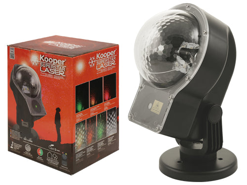 Proiettore Led 7,5 Watt, cavo alimentazione 5 mt., resistente all'acqua e alle intemperie certificazioni IP44, doppia base di supporto. Telecomando. 2 colori in movimento con decoro punti rossi e verdi, effetto neve. Con cambio velocità . Classe II .
