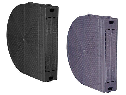 In plastica per avvolgitori con fori. Colore Grigio: 18,5x20,5 cm.
