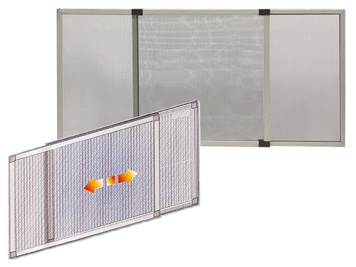 Telaio in alluminio (colore grigio e bianco) già assemblato, estensibile sui due lati, con zanzariera in fibra di vetro. H70x100/192 cm. - Telaio colore silver