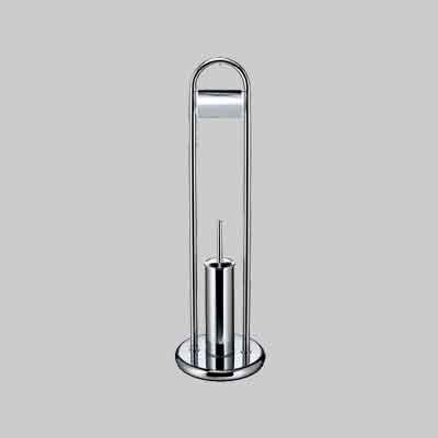 Portarotolo e portascopino. In acciaio. Diam. cm 25, H. 86, L. cm 20.