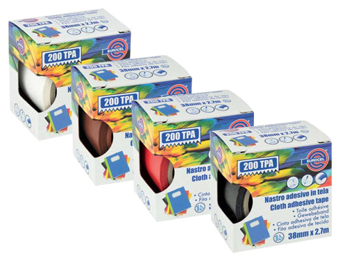 Nastro monoadesivo, tela in cotone plastificato, scrivibile, facile da strappare a mano. Utilizzo casa, scuola e ufficio. Rotolo 2,7 mt. x 38 mm.. Rosso