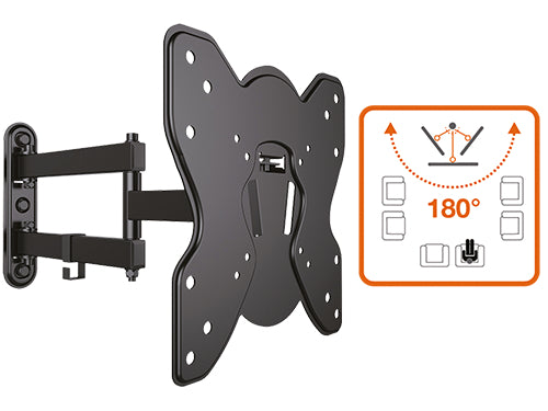 Supporto a parete con braccio orientabile per schermo 28" a 42", fino a 25 Kg.; Distanza TV/parete 6,5 - 40 cm. - Rotazione orizzontale ±180° - Inclinazione verticale ±15°. Dimensione supporto 5x22,5 cm..