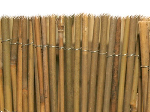 In canna à 10 mm. di bamboo pulita, legata con filo d'acciaio annodato. Confezione in busta singola termoretratta. 150x300 cm. ca.