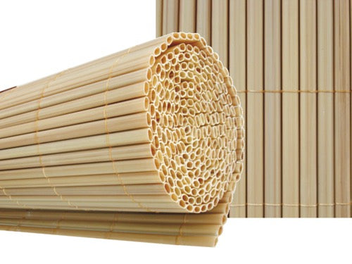 Arelle plastica PVC effetto bamboo, resistente ai raggi UV, annodate con cordino nylon, ideali come ombreggianti di pergole e gazebi, utilizzabili anche come separè, installabili sia in verticale che in orizzontale, facili da tagliare e sagomare. 150x300 cm.