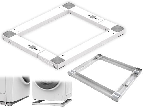 Sposta lavatrici e asciugatrici senza sforzo e senza segnare il pavimento per fare le pulizie o accedere alla parte posteriore. Base in metallo antivibrazione con ruote. Portata max 250 Kg. Estensibile in profondità da 38 a 60 cm. I piedini in gomma assorbono le vibrazioni riducendo il rumore, freni laterali estraibili per immobilizzare lâapparecchio. Dimensioni L60xP44/60 cm. - Altezza 3,6 cm. con ruote sollevate 4 cm..