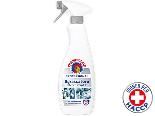 Sgrassatore ad alta efficacia, potente su ogni tipo di sporco. Sgrassa, smacchia e pulisce a fondo efficacemente tutte le piccole superfici. Superpotente sul grasso minerale. Flacone spray 700 ml. Idoneo per HACCP.