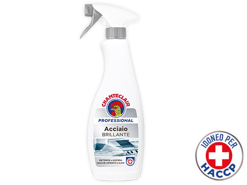Deterge e lucida le superfici in acciaio. Elimina macchie, tracce, impronte e non lascia aloni. Flacone spray 700 ml. Idoneo per HACCP.