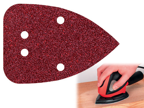 Fogli abrasivi velcrati al corindone 96x136 mm. per levigatrici a delta/multiuso. Per legno e metallo, con legante resinoide, rinforzati con tessuto. Confezione 10 Pz.. Art. 1757000 - Grana 80