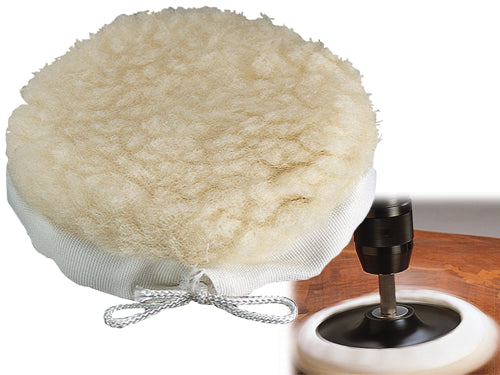 Cuffia à 140 mm. con laccio per trapani, per platorello à 125 mm., per lucidare vernici, metalli colorati e acciaio inossidabile con paste di lucidatura e paste abrasive..