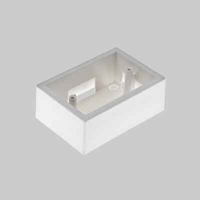 In tecnopolimero a base di PVC rigido autoestinguente. Preforatura del fondo per fissaggio con viti e tasselli. Fondo studiato per fissaggio rapido con adesivi siliconici. Colore bianco. Grado di protezione IP40. Interasse mm 83,5.