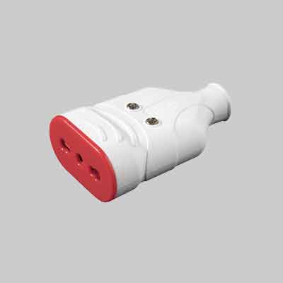 PRESA MOBILE ANTISCHIACCIAMENTO IN GOMMA ROSI 10/16A 2P+T - Col. Bianca. Prezzo per Pezzo.