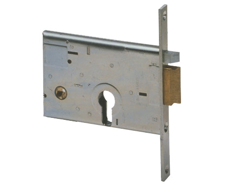 Per fascia di profilati, scrocco autobloccante, entrata 58 mm., frontale 20 mm. Cilindro sagomato non in dotazione.. Mano sinistra