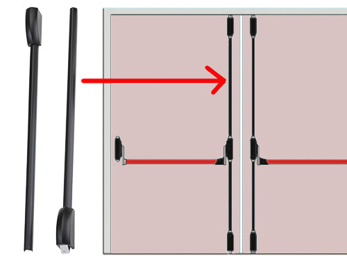 Prolunghe di chiusura, carter in alluminio/lega di alluminio verniciato, coppia scrocchi autobloccanti per chiusura alto/basso in lega di allumnio cromato, mano ambidestra. Altezza anta max 250 cm. Normative: ICIM - CE - UNI EN 1125. Per serie/art. 59011 - 59016 - 59061 - 59065 - 59811 - 59816.