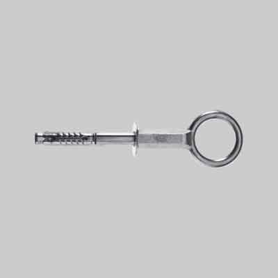 Occhiolo in acciaio forgiato a caldo con Ø 50 mm. Ancorante meccanico, di cui possiede la Relazione Tecnica rilasciata dall'ITC-CNR (Istituto per le Tecnologie della Costruzione - Consiglio Nazionale delle Ricerche). Lo stelo esagonale è facilmente serrabile con chiave da 22. Valori medi di rottura a trazione sono conformi alle Autorizzazioni Ministeriali per la costruzione e l'impiego dei ponteggi metallici. Adatto per calcestruzzo e pietra naturale a struttura compatta.