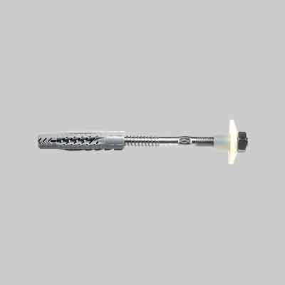 Composto da: vite doppio filetto, tassello nylon Ø 12x60, borchia nylon e dado in acciaio.