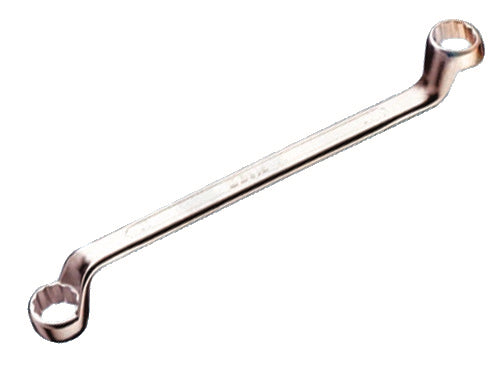 Modello curvo, con bocche inclinate a 75°, in acciaio cromato opaco, UNI 6740 DIN 838 ISO 10104. 20 x 22 mm.