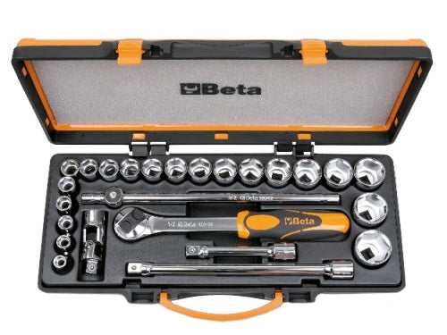 Assortimento in cassetta di lamiera 42x18x6 cm. contenente: 12 Bussole esagonali 920B da 10 - 11 - 12 - 13 - 14 - 17 - 19 - 22 24 - 27 - 30 - 32 mm.; 1 Prolunga 920/21 da 125 mm.; 1 Prolunga 920/22 da 255 mm.; 1 Snodo 920/25; 1 Quadro maschio 920/42; 1 Cricchetto 920/50.