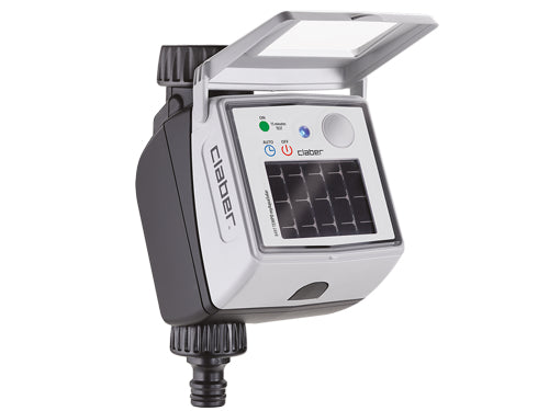 Programmatore automatico dotato di pannello fotovoltaico integrato, funziona con energia solare anche senza essere esposto direttamente ai raggi del sole, non necessita dell'utilizzo di batterie. Facile programmazione con tecnologia Bluetooth e app Claber myAquaSolar. Programmazione personalizzata/settimanale e funzione manuale. Attacco rubinetto 3/4"(20-27 mm.) con ghiera pivotante, filtro lavabile, pressione di esercizio da 0,5 a 10 Bar. Collegabile al Rain Sensor (ns cod. 519418) .