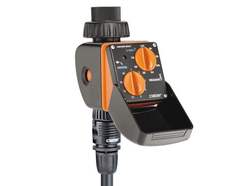 Programmatore automatico ad 1 via, 63 programmi prefissati, programmazione con 2 manopole rotative: una con 7 frequenze, lâaltra con 9 tempi dâirrigazione. Tutti i programmi selezionabili sono riassunti in uno schermo applicato sul coperchio. Dotato di filtro lavabile. Alimentazione 1 batteria alcalina da 9V. Parte elettronica perfettamente stagna. Pressione di esercizio da 0,2 a 12 bar.