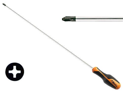 Modello lungo, per viti con impronta a croce Phillips, l'impugnatura bimateriale ha vantaggi ergonomici sostanziali, la punta è priva di cromatura ed è protetta dall'ossidazione con un trattamento di fosfatazione.. 4,5x400 mm.