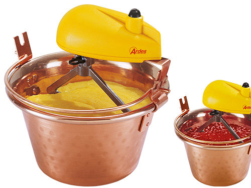 Paiolo elettrico in rame con motore estraibile e fondo piatto, pala in alluminio. Paiolo à 28 cm. - 3,5 Lt. acqua ca. - 700 gr. farina (ideale anche per le marmellate).