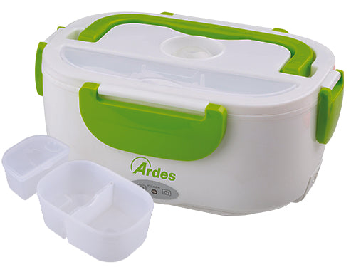 Scaldavivande ideale per riscaldare pietanze in sostituzione al microonde. Contenitori interni removibili. Contenitore con coperchio per liquidi. Valvola di sfogo per vapore. Vano porta posate con cucchiaio in dotazione. Basso consumo energetico 40W. Elemento riscaldante ceramico. Capacità 1,05 lt. Dimensioni L24xP17xH11 cm..