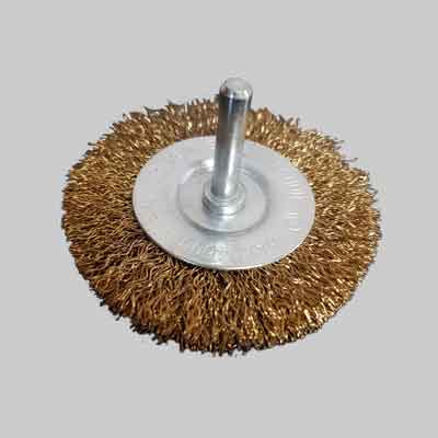 Filamenti in acciaio ottonato ondulato. Gambo Ø mm.6x25. Per un utilizzo prevalente su utensili portatili ad alta velocità di rotazione, per lavori di abrasione laterale e pulitura di superfici.