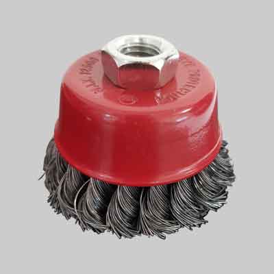 Filamenti in acciaio a mazzetti ritorti. Foro M14. Per utilizzo su smerigliatrici portatili, sia elettriche sia ad aria compressa, per lavori pesanti di sgrossatura, e finitura di saldature e sbavature.