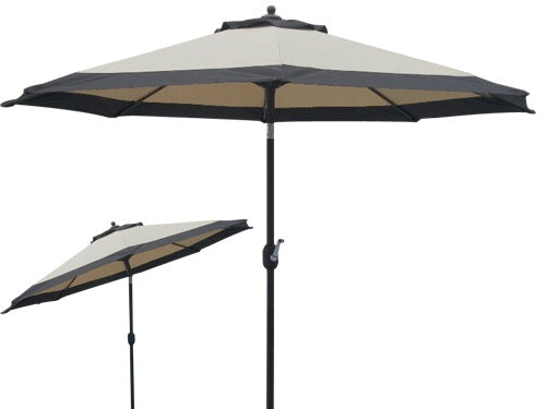 Orientabile. Struttura in alluminio, telo con airvent in poliestere 180 gr/mq. bicolore marrone/beige, sistema apertura push-up. Dimensioni à 270 cm. - palo à 38 mm. - H. 250 cm..