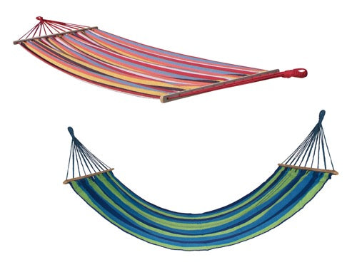 Telo in cotone, bastoni di sostegno in legno 80 cm. con corde. Dimensioni 200x100 cm. Colori assortiti.