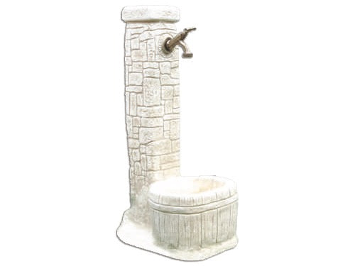 Manufatto in granulato di pietra, cemento bianco, armature interne in ferro zincato e additivi idrorepellenti, finitura realizzata a mano, colore grigio, tubazione interna. Dimensioni 32x42xH73 cm. Peso 28 Kg. Compatibile con il ns. rubinetto cod. 531604 - cod. 531617 RUBINETTO NON IN DOTAZIONE.