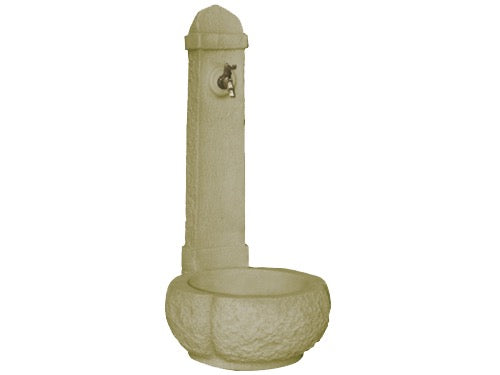 Manufatto in granulato di pietra, cemento bianco, armature interne in ferro zincato e additivi idrorepellenti, finitura realizzata a mano, colore senape, tubazione interna. Dimensioni 47x55xH96 cm. Peso 79 Kg. Compatibile con il ns. rubinetto cod. 531604 - cod. 531617 RUBINETTO NON IN DOTAZIONE.