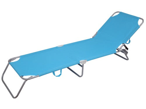 Struttura pieghevole in acciaio tubolare à 18 mm., verniciato a polveri epossidiche bianco, rivestimento in poliestere 600D., schienale regolabile e totalmente reclinabile. Dimensioni 188x58xH25 cm..