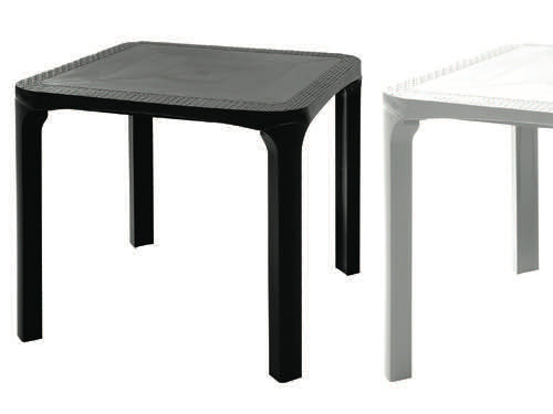 Struttura in resina con bordo effetto rattan, resistente agli agenti atmosferici. Dimensioni L80xP80xH72 cm.. Antracite