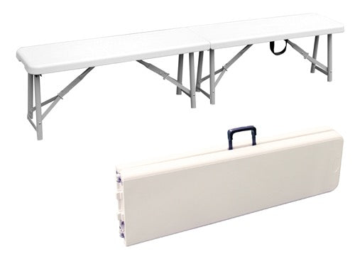 Struttura tubolare in acciaio à 25 mm., seduta in polipropilene alta densità (HDPE). Dimensioni 183x28xH42 cm. Pieghevole.