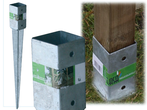 Puntali in metallo in acciaio zincato ad incastro (7,3x7,3 cm. ) per pali impregnati LASA comode per essere installate direttamente nei terreni. Altezza 75 cm..